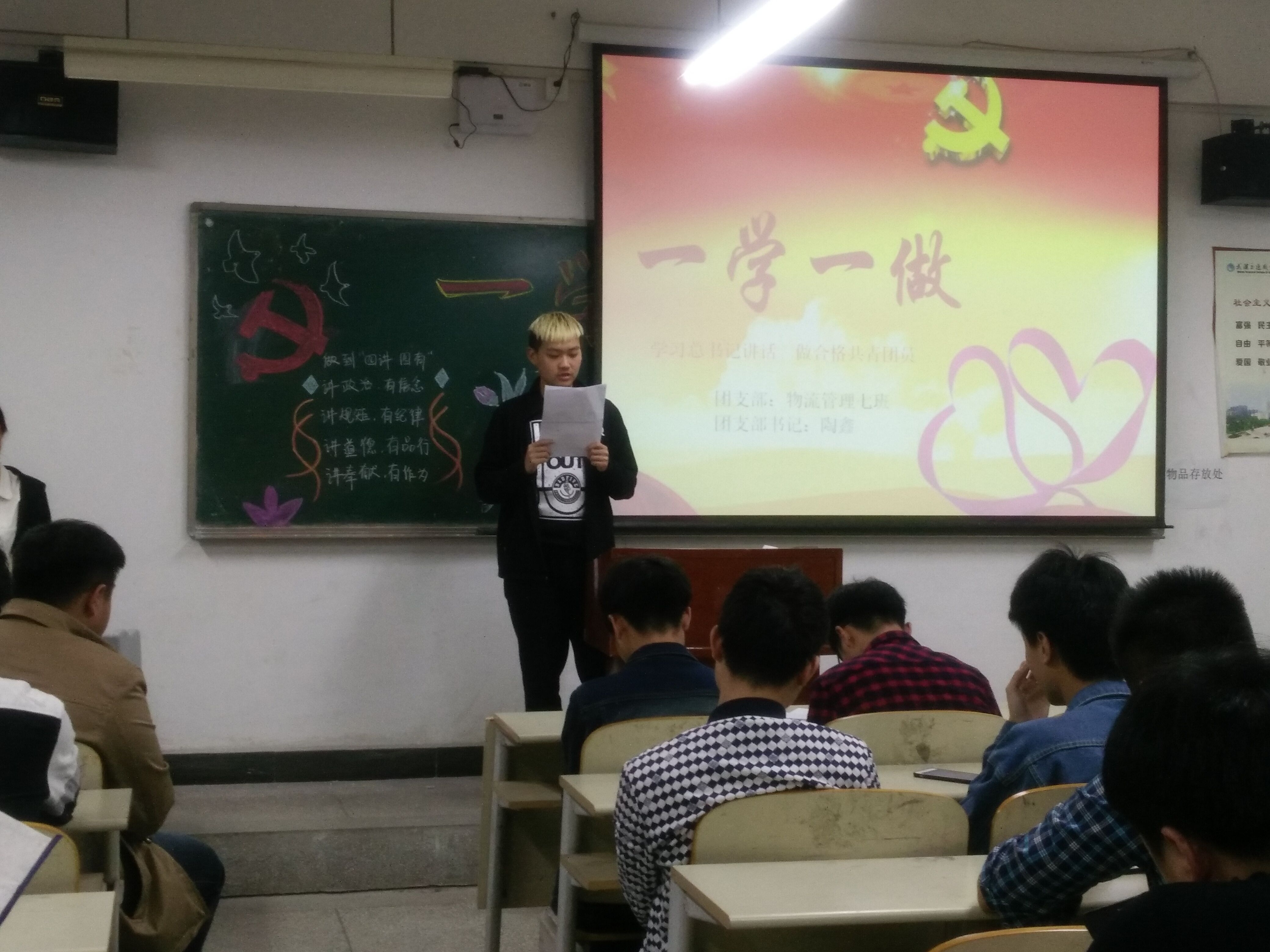 为了让同学们好好学习习总书记讲话,做合格共青团员。4月13日晚上,物流学院16级各班组织了一次以“一学一做”为主题的团会。团会由各班团支书及班委主持,全体同学参加。