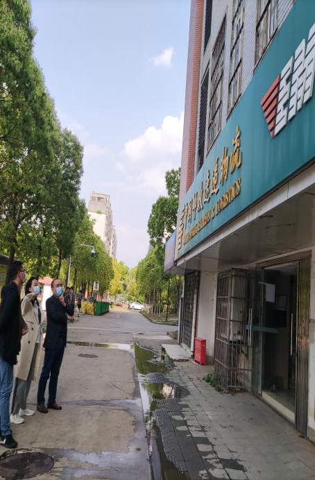 上图物流学院的老师们正在讨论营业厅快递的防疫问题。
