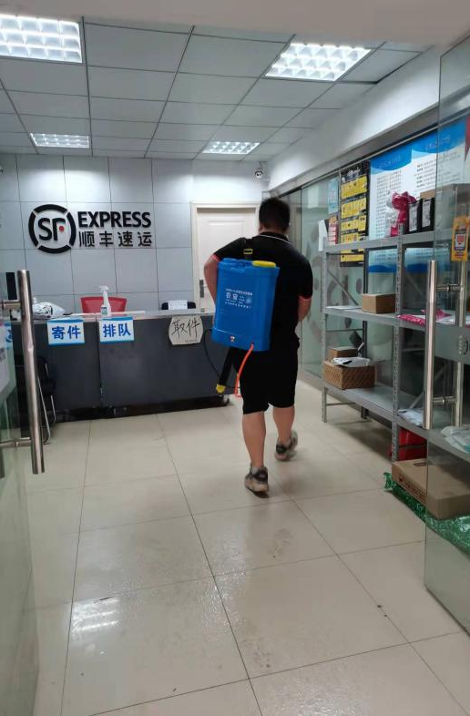 在同学返校之前,顺丰营业厅便派专门的消毒人员进行了营业厅的全面消杀。