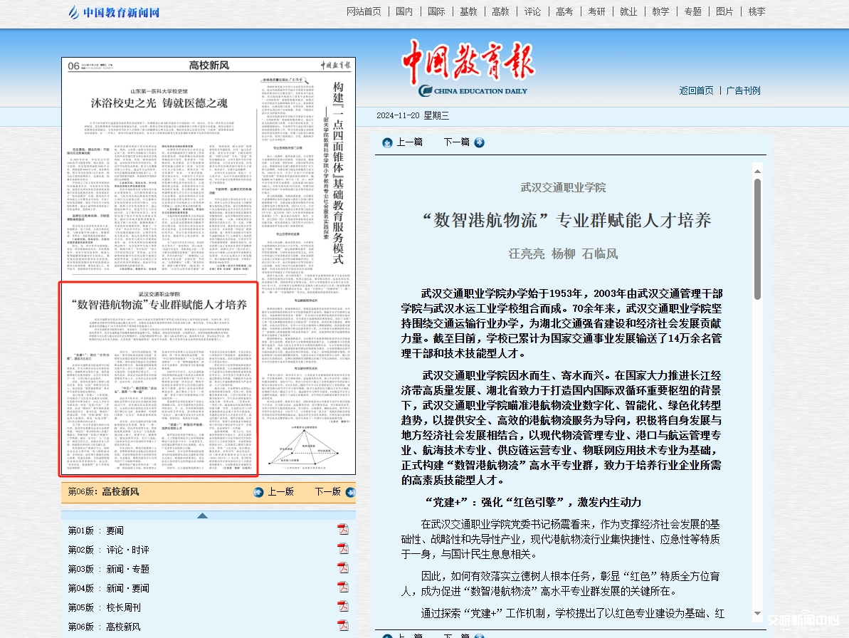 随着国际产能合作和共建“一带一路”倡议的深入实施,职业教育正在成为中外经贸和人文交流合作的新载体。从“中文+物流职业技能”,到“中文+国际物流服务”“中文+智慧交通物流”……在“数智港航物流”高水平专业群中,跨国教育合作越来越被重视。