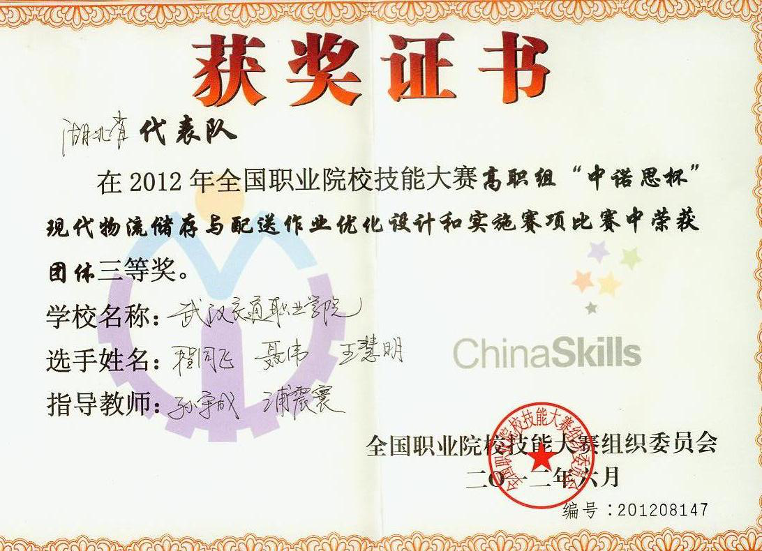 我校荣获2012年全国职业院校现代物流赛项荣获三等奖