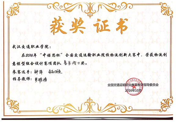 我校荣获2016年“中诺思杯”全国交通运输职业院校物流创新大赛最具潜力奖
